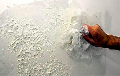 Lorsque la surface plâtrée perd son éclat humide, et cela se produit après environ 15-20 minutes, il est nécessaire de marcher avec une truelle humide le long de la surface et de lisser légèrement le relief résultant. La repasseuse doit être lavée aussi souvent que possible à l'eau afin que les particules de plâtre ne s'accumulent pas.