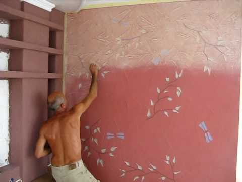 La solution préparée est appliquée sur le mur avec une spatule en couche uniforme, et lorsqu'elle prend un peu, ils commencent à créer un relief: râpe, tampons, rouleaux, pinceaux, mains propres et même des sacs en plastique, des feuilles et des plumes peuvent venir à la rescousse, tout ce qui est sous vos mains, peut être utilisé pour créer des motifs uniques. Ils fonctionnent un peu différemment, mais ils appliquent des outils pour créer un relief, les dessinent le long de la surface, dessinent des motifs, etc. L'épaisseur du calque dépendra du motif que vous souhaitez créer et de l'effet que vous souhaitez obtenir.