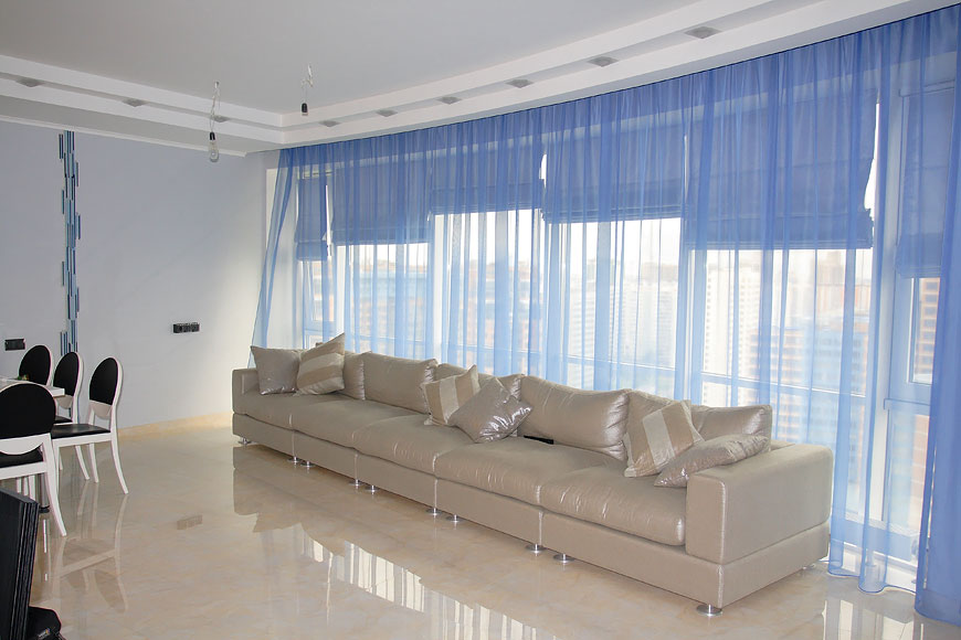 Dans de nombreuses régions de notre pays, il n'est pas si chaud et ensoleillé de vous protéger des rayons et de la chaleur tant attendus, par conséquent, les stores romains ne peuvent être utilisés qu'à des fins décoratives et choisissez tissus transparents ou translucides. Mais cette option vous protégera de manière fiable contre les yeux des passants, c'est donc une excellente option pour les résidents des premiers étages.