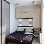 Au lieu de lampadaires massifs il est préférable d'utiliser des appliques murales: de précieux centimètres carrés de la zone seront économisés sans perte de fonctionnalité globale. Les tables de chevet peuvent également être remplacées par quelque chose de plus élégant: joyeusetés, étagères, une console basse, etc., vous pouvez également utiliser des armoires hautes et étroites. Toutes les petites choses peuvent être repliées sur le lit, si vous y organisez une étagère. Généralement dans les petites chambres les systèmes de stockage du plan horizontal est préférable de passer à la verticaleet organisez les étagères jusqu'au plafond: elles peuvent remplacer même les commodes les plus massives en termes de capacité.