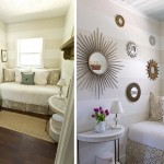 Un lit sans tête de lit est un moyen sûr de donner à votre chambre un peu d'espace supplémentaire. Dans la plupart des cas, dans les petites chambres, le lit est poussé contre le mur, puis, privé d'une tête de lit, il peut ne pas sembler très confortable. Dans ce cas, le problème sera résolu. tête de lit faite à la main sur le mur au-dessus du lit. Il peut être disposé à partir d'oreillers, vous pouvez simplement rembourrer une section textile du mur au-dessus du lit. Vous pouvez également décorer cette pièce avec une planche de parquet, l'utiliser comme endroit pour accrocher des photos, fixer des étagères, etc.
