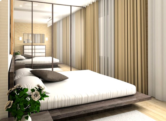 Les miroirs suspendus dans la chambre sont un autre moyen simple et fiable d'agrandir la chambre visuellement. Si vous positionnez correctement le miroir au sol dans la pièce, vous pouvez l'illusion d'espace supplémentaireet la chambre, restant exactement de la même taille, semblera déjà plus spacieuse. Tout cela est dû au fait que le miroir double l'espace. Toutes les surfaces en miroir ont les mêmes propriétés, de sorte que ces accessoires, meubles et décor doivent être utilisés dans la conception d'une petite chambre.