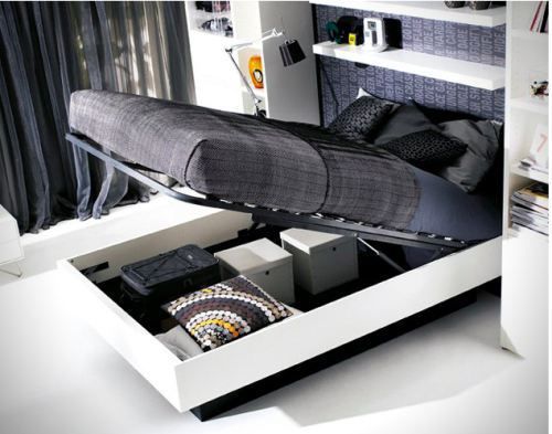 Les Français et les Italiens sont déjà devenus de vrais maîtres dans l'aménagement d'installations de stockage dans de petits appartements. Dans leur pratique, les créer dans les endroits les plus inattendus: au-dessus du lit, dans les toilettes, sur le canapé du salon. Grâce à cela, des choses utiles, des souvenirs et d'autres objets peuvent être stockés sans impliquer des mètres carrés aussi précieux.