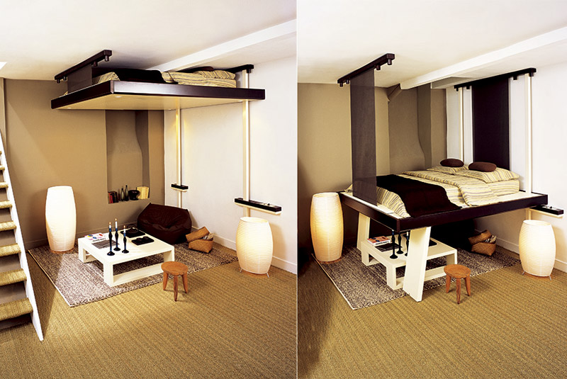 Comment est utilisé dans votre appartement plus grande salle? Très probablement, il est réservé au salon, et c'est une décision très fréquente et, dans la plupart des cas, la bonne. Mais si vous vous réunissez rarement en famille dans le salon et êtes obligé de vous blottir dans de très petites pièces privées, alors pourquoi ne pas changer la fonction des locaux à certains endroits. Vous pouvez déplacer votre chambre dans la pièce la plus spacieuse de toutes, et là équipez votre bureau, coin sport ou un lieu de créativité. Cela peut être fait grâce à toutes les mêmes méthodes de zonage, à l'aide d'un podium, etc.