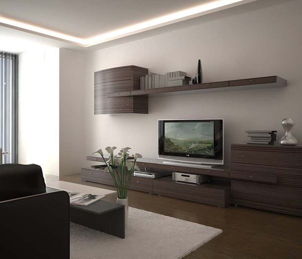 Idéal pour petits appartements style intérieur – minimalismesalut-technologie et moderne. Tous les articles doivent avoir des formes claires et concises, être aussi simples que possible, sans détails élaborés. Eh bien, si vous parvenez à combiner plusieurs fonctions dans un même sujet, et il y a maintenant beaucoup de meubles similaires. Les canapés qui peuvent se transformer en lit, tout en ayant un espace de rangement spacieux, ne nous surprennent plus. Vous pouvez également faire attention aux solutions modernes: des tables qui s'étendent du mur, une planche à repasser qui se cache de manière compacte dans un placard, etc.