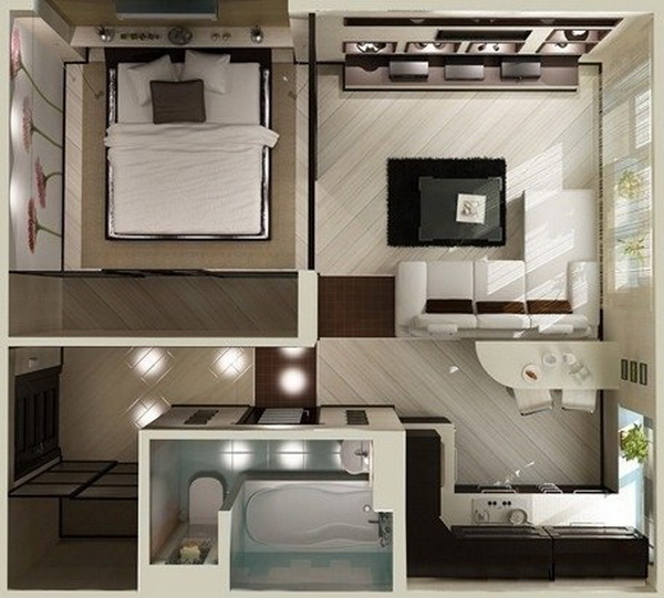 Tout le monde veut vivre dans un appartement confortable et agréable, où tout est fait avec goût, et tous les objets sont en harmonie les uns avec les autres, créant ensemble un seul espace élégant. Et si dans les appartements spacieux ce n'est pas si difficile, alors les miniatures devront travailler dur. Les concepteurs déclarent à l'unanimité que plus l'appartement est petit, plus il est difficile de l'équiper correctement, et lors de l'élaboration des projets et des plans, chaque millimètre est pris en compte, car vous devez aménager tous les espaces nécessaires à la vie, sans oublier les lieux de stockage, les décorations et autres éléments.