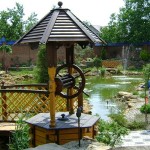 - style oriental a pris racine dans l'aménagement paysager, car sa simplicité et son minimalisme impressionnent les loisirs de plein air. Dans la culture des pays de l'Est, le puits fait l'objet d'une attention particulière, le protégeant de la poussière, de la saleté et du mauvais œil et le recouvrant d'un toit. Le puits peut être en bois ou en pierre, en utilisant des images de créatures mythiques, de dieux, etc., tandis que le toit sera légèrement renversé dans les coins. Pour sa disposition utilisez le plus souvent tuile mollequi prend parfaitement la forme donnée. Situé dans le quartier jardin de rocaille, ruisseau secles bosquets de genévriers s'intègrent parfaitement dans le paysage;