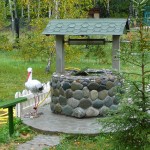 - style rustique. Le style rustique utilise principalement du bois et de la pierre, donc c'est génial si la maison est également construite en bois. Le chapeau peut être décoré d'une maison en rondins, la verrière peut également être en bois, mais le toit peut être fait de la même manière que le toit de la maison. Si la maison est décorée dans le style d'une tour avec des volets sculptés, le puits devrait recevoir une nuance de fabuleux: il peut être décoré de sculptures intéressantes, de figures d'animaux et la tête peut être en bois ou même en brique. Autour du puits dans un style rustique, vous pouvez planter des couleurs plus vives pour enfin l'adapter au paysage créé, mais vous devez lui laisser un chemin pour un accès facile;