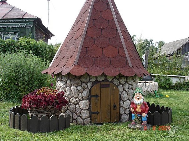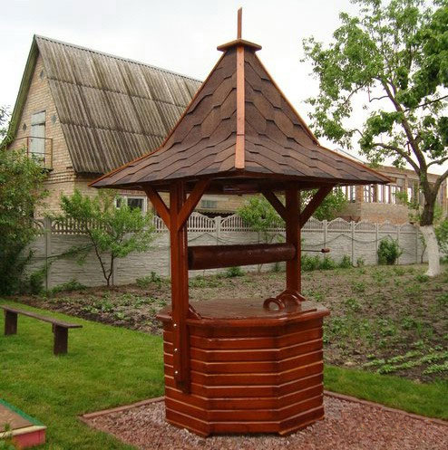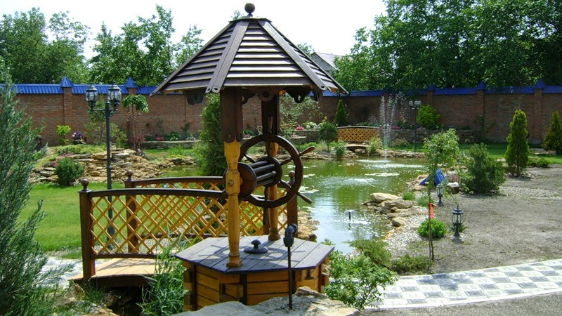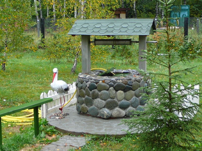 - le puits peut être façonné moulins ou même une maison miniature: ainsi l'eau sera protégée autant que possible des influences extérieures, et le site sera décoré d'un élément intéressant qui s'harmonisera avec succès, par exemple, avec espace barbecueoù la présence d'eau douce ne fait pas de mal;