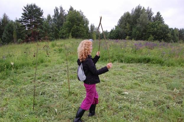 Scientifique. Il est préférable d'inviter des hydrogéologues professionnels qui exploreront la région, effectueront des forages exploratoires, analyseront de nombreux facteurs et fourniront finalement l'image la plus complète. Ils vous diront non seulement où il est préférable de placer le puits, mais ils vous diront quel type est préférable de choisir, la meilleure façon de construire et de renforcer, et combien cela coûtera. Un professionnel doit également analyser la qualité des eaux souterraines et identifier l'influence de facteurs externes sur celles-ci, et même conseiller la meilleure façon d'intégrer une structure d'ingénierie aussi simple dans le paysage. Lors du choix d'un emplacement pour un puits, des facteurs tels que la hauteur du territoire, l'emplacement des endroits dangereux à proximité, etc. sont pris en compte. Donc, si vous creusez un puits dans la partie basse du site, le coût des travaux sera faible, mais il y a une chance que l'eau pénètre dans l'eau à cause de la fonte des neiges, de la pluie, etc., les parties à haute altitude du site sont plus protégées, mais l'endroit où il se trouve est optimal eaux interstratales. Il est préférable de creuser un puits à la distance maximale d'une éventuelle pollution: décharges, fosses de drainage, piscines, bains, etc., et le processus de reconnaissance est effectué par temps sec. Tout cela et pas seulement l'hydrogéologue devrait savoir qui déterminera le meilleur endroit pour l'emplacement du puits aussi précisément que possible.- Une façon populaire populaire est radiesthésie. Des explications sur la nature de cette méthode n'ont pas encore été fournies, mais, néanmoins, elle donne des résultats stables et corrects. L'option la plus simple consiste à utiliser un brin de viorne, de saule ou de noisetier, alors qu'il devrait avoir une forme en V et un angle d'au moins 150 degrés. La branche est ramassée aux deux extrémités et parcourt lentement le site avec elle, observant le comportement. À l'endroit où la branche se plie au sol, il y a très probablement de l'eau. Une méthode plus moderne consiste à utiliser des cadres en aluminium.Le fil d'aluminium jusqu'à 1 m de long est plié à angle droit de sorte que la longueur de l'extrémité soit de 10 à 15 cm, il est préférable de l'insérer dans un tube en bois de sureau. En tenant dans leurs mains ces cadres, tournés à 180 degrés, parcourez lentement le site et voyez où ces cadres se déplient les uns aux autres - à cet endroit, il y a de l'eau. Les tourner simultanément sur l'un des côtés est un signe de la direction du flux d'eau à un certain endroit.Le point de contact des deux fils indiquera l'endroit où vous devez creuser un puits. Dans la plupart des cas, cette méthode fonctionne et si la branche ne tombe pas ou si les cadres ne se touchent pas, vous devez chercher de l'eau dans un autre endroit.