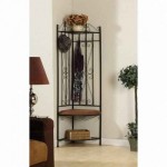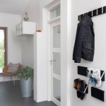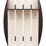 Mais néanmoins on ne peut certainement pas se passer d'un cintre dans le hall: il peut s'agir soit d'un petit bar à plusieurs crochets soit d'un modèle au sol. La deuxième option, bien sûr, est plus pratique, plus jolie, mais en raison de son volume, il n'est pas possible de la placer dans chaque couloir. Fixé au mur cintres peut être équipé d'un nombre différent de crochets situés à la même hauteur ou à différentes hauteurs, et au-dessus d'eux une petite étagère peut être installée pour ranger les chapeaux ou les parapluies. C'est l'une des options les plus compactes, qui reste en même temps fonctionnelle.