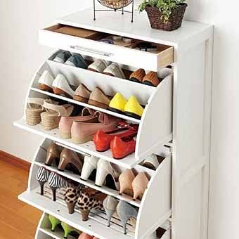 Si votre hall d'entrée a une armoire coulissante ou une armoire avec une table de chevet pour ranger les chaussures sans problème, la question peut être supprimée. Mais que faire dans un certain nombre d'autres cas? Une excellente option, qui convient même aux couloirs les plus compacts, - dessus de four. Il s'agit d'un objet étroit de la hauteur d'une commode, qui comporte plusieurs sections pour ranger les chaussures: en fonction du type de chaussure et de la largeur du haut, le nombre de paires qui peuvent facilement y entrer peut varier considérablement. La compacité est obtenue grâce au fait que toutes les chaussures qui s'y trouvent sont effectivement stockées dans un état vertical.