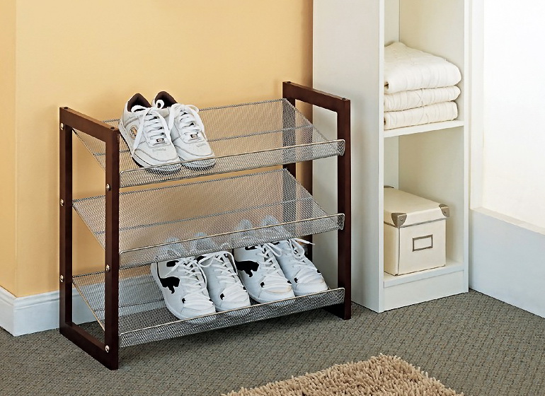 Il existe de nombreuses autres options.Le plus simple est de ranger les chaussures sur des étagères spéciales en plastique: leur choix n'est pas très large, mais elles sont spacieuses, mais elles nécessitent également une certaine place dans le couloir. Souvent tables de chevet combiner avec un endroit pour s'asseoir, et en conséquence, le processus de ferrage devient aussi simple que possible, et même le problème de la présence dans le couloir est résolu bancs, bancs ou poufavec lequel mettre et enlever des chaussures est beaucoup plus pratique.