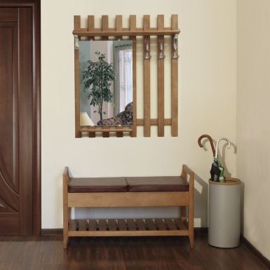 Si le hall d'entrée est si compact que le placard ne rentre pas là, ou s'il a une forme carrée, il est préférable d'utiliser un petit placard combiné avec une mezzanine et une table de chevet pour les chaussures, un siège, un système de crochets et un miroir. L'ensemble de ce système multifonctionnel prend très peu de place, mais offre la possibilité de stocker les choses les plus nécessaires. Soit dit en passant, dans certains ensembles, les portes battantes d'une telle armoire sont équipées de compartiments pour accueillir toutes les petites choses, telles que des gants et des parapluies.