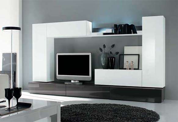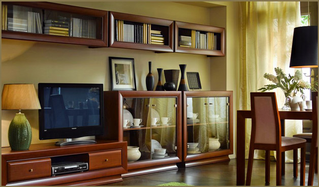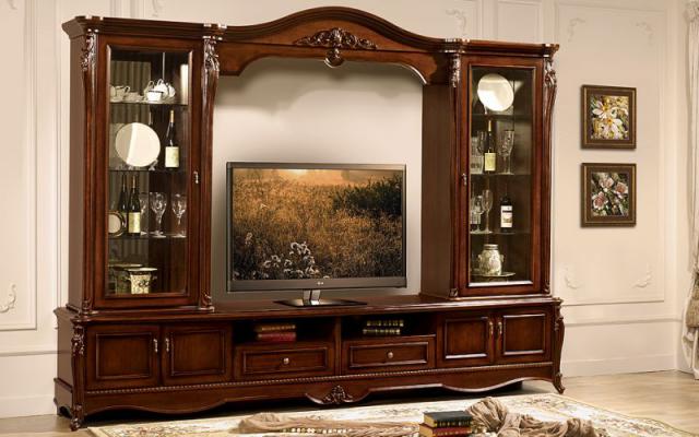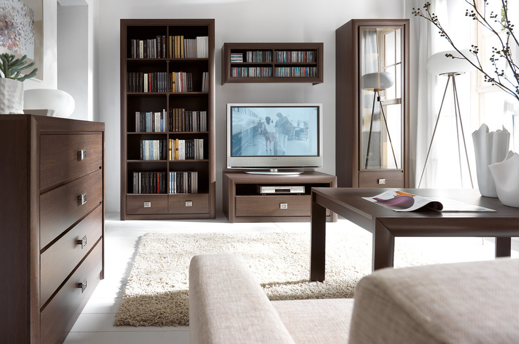 Une télévision fait autant partie intégrante d'un salon qu'un canapé ou des fauteuils. Il est présent dans 99% des salons, et souvent il n'est pas accroché au mur, mais posé sur un piédestal. L'armoire doit s'adapter à la taille de votre téléviseur. En ce qui concerne le matériau et la couleur, vous devez partir du style choisi: l'armoire peut être en verre, en bois, en aggloméré, MDF et autres matériaux. Ce n'est pas mal s'il y aura compartiments de rangement de petits objets, afin de ne pas les disperser dans la pièce, créant ainsi un aspect peu soigné dans le salon. Au fait, les armoires sur roulettes sont une très bonne option: si nécessaire, vous pouvez les déplacer un peu pour que l'image sur le téléviseur soit clairement visible pour toutes les personnes présentes.