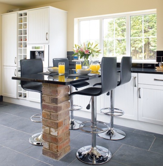 Une tendance moderne intéressante est l'utilisation de comptoirs de bar. Ils prennent peu de place, sont très fonctionnels et permettent de diviser le salon en zones. Il est important que la surface du comptoir du bar résiste à toutes sortes de dommages, soit durable et que la présence de plateaux de table pliants soit un bonus supplémentaire. Comptoir de bar sépare souvent le salon de la cuisine et peut même devenir une table à manger. Si vous restez avec cette option, vous devez acheter et chaises hautes spéciales, dont le choix est tout simplement époustouflant: il existe une option pour tous les goûts et pour tous les intérieurs.