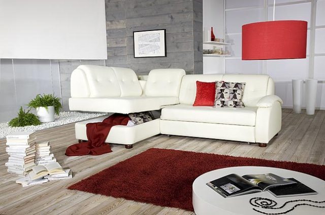 La forme de la pièce est tout aussi importante que sa taille, et ce paramètre doit être pris en compte lors du choix du mobilier. Ainsi, dans certaines pièces, la tâche est d'essayer de gagner de l'espace, et dans d'autres, au contraire, vous devez le remplir d'une manière ou d'une autre afin de ne pas laisser d'espace vide. Dans ces cas, les approches sont différentes, mais, chose surprenante, le canapé d'angle convient à n'importe quel salon: grand ou petit. Vous devrez tout de même mettre au moins un canapé double et un fauteuil, mais tout cet ensemble peut être remplacé par un canapé d'angle, et il y a un siège de plus dans le coin, et il n'est pas nécessaire d'équiper le passage. Mais il est important de trouver le bon endroit pour le canapé d'angle: si tu le mets près d'un mur court, il encombrera la pièce et la rendra plus petite.