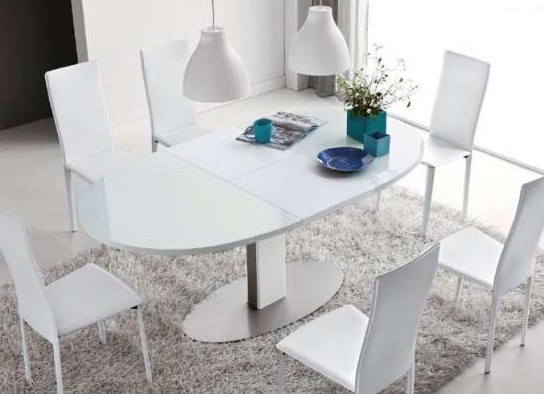 - Mais pour les locaux dans un style moderne, et même sans mètres carrés supplémentaires, il est préférable de choisir une autre option. Alors table en verre ovale ou ronde sera tout aussi fonctionnel, mais en même temps se dissoudra dans l'espace. Une autre bonne option est table cube, dont la surface est utilisée aux fins prévues, et le volume devient un autre lieu de stockage. Si en même temps un tel cube est en plastique translucide, il est idéal même pour les plus petit salon.