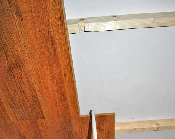 Une autre façon de fixer le stratifié au plafond est d'installer des poutres en bois de soutien. Mais, étant donné que les petits ongles seront invisibles, la méthode décrite ci-dessus est plus avantageuse