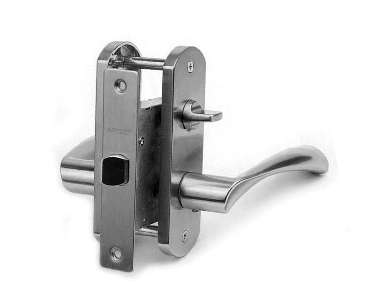 Ce type de serrure peut être appelé une modification d'un verrou conventionnel.Cette conception est équipée en plus de la languette, entraînée par un ressort ou un aimant, également d'un verrou qui peut verrouiller la serrure en position fermée. Ces verrous sont mis dans les pièces où il est nécessaire de verrouiller l'intérieur: ce sont le plus souvent des baignoires, des toilettes, parfois des chambres ou des bureaux. Contrairement au type de verrou précédent, il est probable que le verrou se bloque simplement, et il vaut donc la peine d'approcher le choix d'un tel mécanisme aussi soigneusement que possible. Donc, avant d'acheter, vous devez vérifier à quel point la langue marche doucement et en douceur, et s'il y a suffisamment de force de ressort ou d'aimant pour renvoyer la langue à l'intérieur du battant de porte.