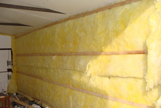 Séparément, il convient de noter le réchauffement laine de verre - C'est l'une des variétés de laine minérale. Puisqu'il est fait de déchets de verre fondu ou de roches saturées de silicium, des particules en forme d'aiguilles sont présentes dans la structure, ce qui représente le principal danger pendant le fonctionnement. Lors de l'isolation du garage avec un tel matériau, toutes les exigences de sécurité personnelle doivent être strictement respectées afin que les particules de matériau ne pénètrent pas dans la peau, les yeux ou le système respiratoire. La laine de verre a très peur de l'eau, et si elle est un peu mouillée lors de l'installation, le matériau peut simplement être jeté, car toutes les propriétés d'isolation thermique sont déjà perdues. Et bien que son prix soit beaucoup plus bas que celui de la laine de roche, il n'est pas très populaire parmi ceux qui veulent isoler le garage de l'intérieur, car son installation est compliquée.