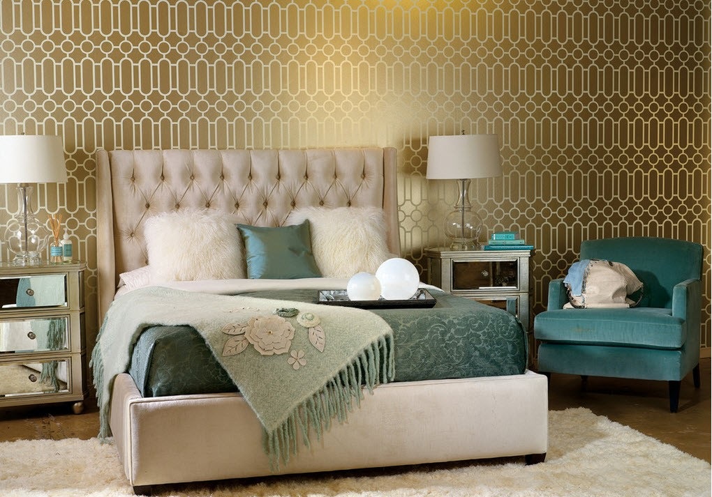 La particularité du papier peint en métal est qu'il s'intégrer avec succès dans presque tous les intérieurs. Donc, pour la haute technologie, les papiers peints plus lisses avec une teinte argentée conviennent, et les papiers peints en relief avec une teinte dorée sont classiques.