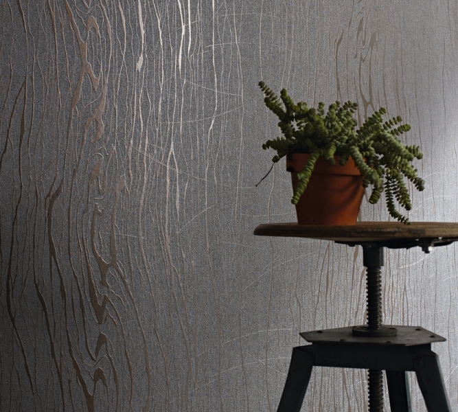 Papier peint métallique, ou métallisé, composé à partir de deux couches de matériau: le premier est en papier ou non tissé, le second est en papier aluminium. La feuille peut être lisse ou avoir une sorte de motif, de gaufrage, une certaine couleur, etc.