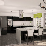 Aujourd'hui comptoir de bar - l'un des moyens les plus populaires de diviser l'espace, et il peut être utilisé à la fois dans les cuisines ordinaires et dans les cuisines-salons. Naturellement, cette option n'est pas pour les plus petites cuisines, mais pour de nombreuses pièces plus ou moins spacieuses, elle est très adaptée.