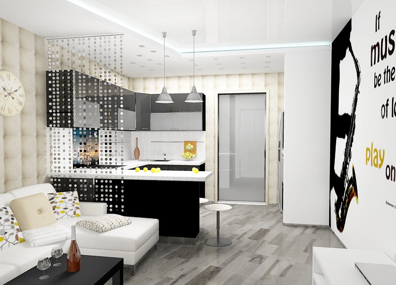 Et pourtant combiner la cuisine et le salon n'est mieux que si vous avez un grand appartement et chaque membre de la famille a une chambre séparée. Si la surface de la cuisine et du salon est petite, une telle solution serait également la bienvenue. Quelles méthodes de zonage, en plus de celles décrites ci-dessus, conviennent dans ce cas?