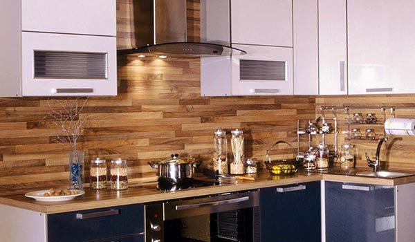 - belle apparence: ces panneaux peuvent imiter les carreaux de céramique, la pierre, le bois, brique, et récemment, un motif lumineux a été appliqué au matériau afin que le tablier devienne un véritable atout de la cuisine.