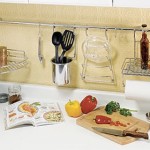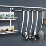 Sous le mot complexe "balustrade" est complètement caché construction simple. Il s'agit d'une barre métallique fixée au mur. Vous pouvez y placer des louches, des passoires, des essuie-tout, des couvercles de casseroles, même des bouteilles d'huile et d'autres ustensiles, et cela est possible grâce à une variété d'accessoires articulés.