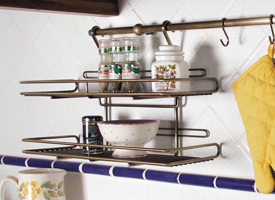- étagères nécessaire pour y placer des épices et des bouteilles, des produits d'entretien ménager, des éponges, des planches à découper;
