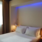 - Mettez en surbrillance à l'aide d'un projecteur.sur lequel se trouve le lit, si prévu dans la chambre. Lorsque vous allumez un tel rétro-éclairage dans l'obscurité, il semblera que le lit flotte dans l'air. L'alternative est de créer éclairage au sol autour du lit, l'effet est similaire;