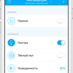 - création et gestion de scripts. Au lieu de courir dans l'appartement avant de quitter la maison et d'éteindre les lumières, les appareils électriques, le chauffage et les volets partout, vous pouvez simplement créer scénario appropriééteindre les appareils et les systèmes nécessaires et mettre l'appartement en garde. L'utilisateur n'a besoin que d'appuyer sur un bouton, ce qui fait gagner du temps et garantit que vous n'oublierez certainement rien. De plus, les scripts peuvent ne pas être activés en appuyant sur le boutonet automatiquement: il est nécessaire de régler l'action et une certaine condition, et 15 minutes avant le réveil, par exemple, le système de sols chauds sera activé.