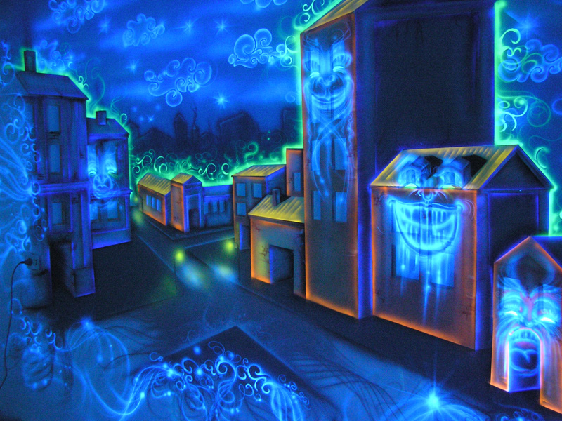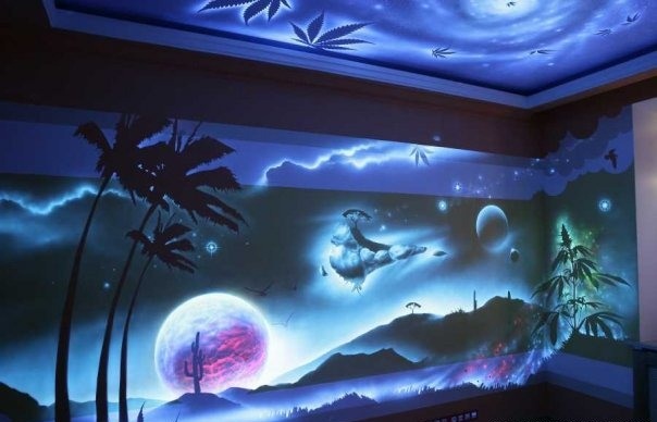 Lorsque le soir arrive, le motif sur ces papiers peints reçoit des contours légèrement lumineux, mais le motif est entièrement révélé dans l'obscurité lors d'une luminescence spéciale Lampes BLB. Ils diffèrent des produits ordinaires par la présence de projections noires à l'intérieur. Bien sûr, le fait que les papiers peints fluorescents nécessitent l'utilisation d'éléments supplémentaires est un inconvénient, mais cet inconvénient est insignifiant, car il est finalement possible d'obtenir un effet incroyable.Le motif sur le papier peint semble tridimensionnel et peut facilement devenir un point culminant de l'intérieur. Il est recommandé d'installer les lampes à moins de 1 m du coin de la pièce.