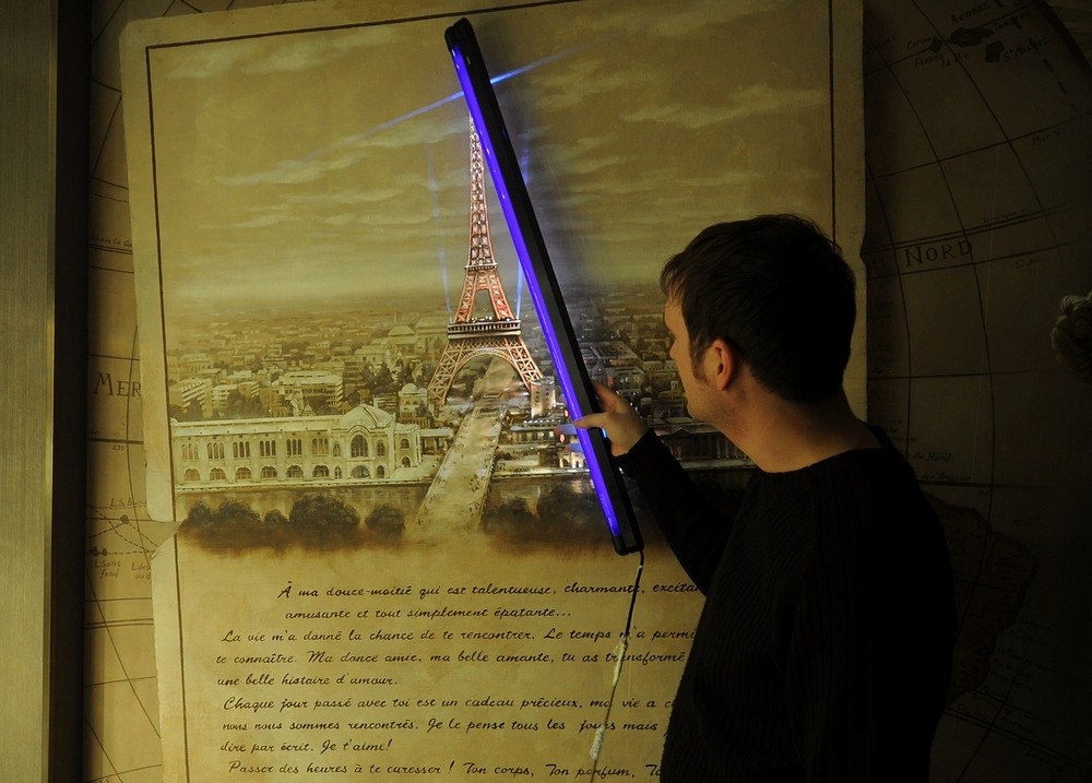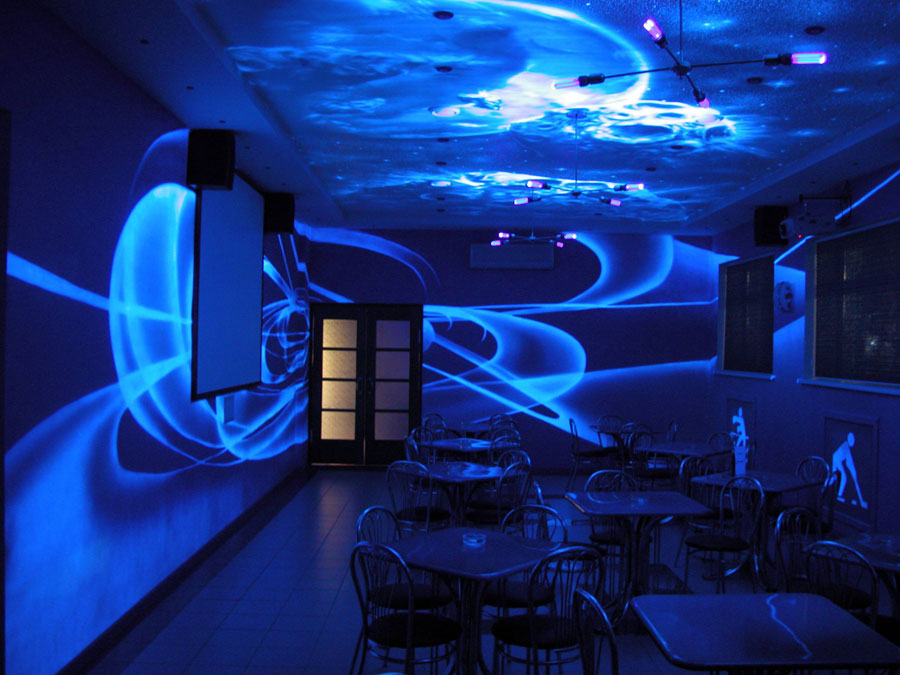 Si vous avez choisi un papier peint fluorescent, il est maintenant temps d'installer spécial Lampes BLB. Leur nombre dépend directement de la surface occupée par le papier peint: 3 m2 papier peint lumineux utiliser une telle lampe. Si vous décidez de décorer les murs et le plafond avec du papier peint lumineux, le calcul du nombre de lampes nécessaires est quelque peu différent: pour cela, vous devrez diviser la surface du sol en trois - le résultat correspondra au nombre de lampes nécessaires.