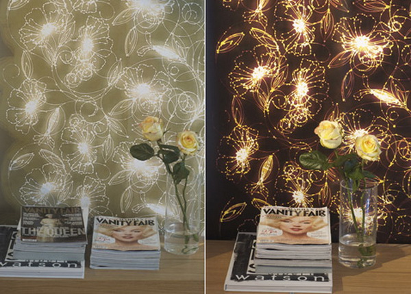 La première mention du papier peint LED est apparue en 2006. Aujourd'hui, ce matériel est plus susceptible de s'appliquer à développements prometteurs, mais comme il peut également émettre de la lumière, il convient de le mentionner. La particularité de ce matériau est l'utilisation de puces LED, qui sont intégrées dans le matériau de base. Grâce à eux, les paysages et les dessins représentés sur le papier peint prennent vie et deviennent de plus une source d'éclairage supplémentaire. Après l'avènement d'une telle technologie, de nombreux grands fabricants de papiers peints s'y sont intéressés et prédisent qu'elle se généralisera à l'avenir, mais pour l'instant les papiers peints LED restent très chers, et vous ne pouvez pas les trouver en vente.
