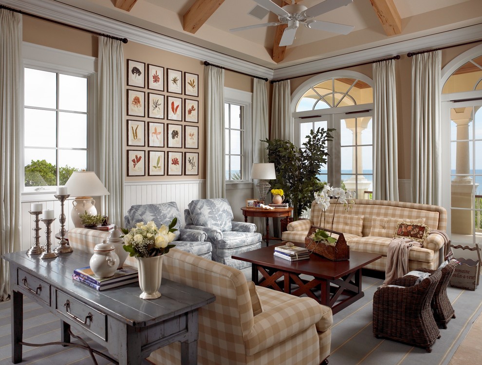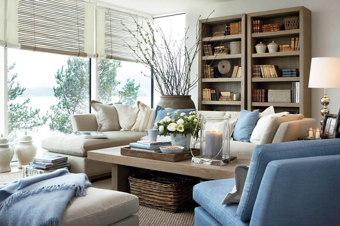 - les articles de décoration sont minimes, mais ils doivent être brillants. Des miroirs, de la porcelaine, des thèmes nautiques, des paniers en osier et des photographies de famille sont utilisés.