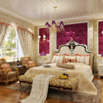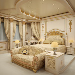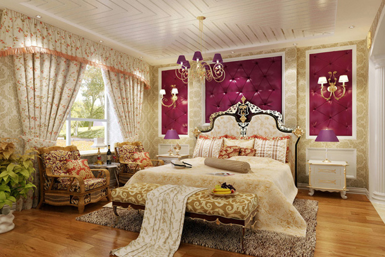 - pour la finition des sols parquet, moins souvent - tuiles, sur le dessus, vous pouvez poser un tapis fait dans un style moderne ou rétro. Les murs sont finis avec du papier peint avec une structure en soie et un motif riche, vous pouvez utiliser des motifs orientaux, la peinture d'art des murs a fière allure. Le plafond est à plusieurs niveaux, des poutres peuvent être utilisées;