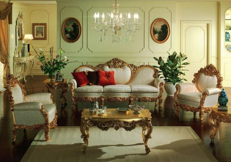 - les meubles devrait souligner la splendeur de l'intérieur, être massif. Est utilisé meubles en boisorné de sculptures et de dorures, les jambes peuvent être exécutées en forme de pattes de lion, être décorées d'un motif. Mobilier ancien en priorité;