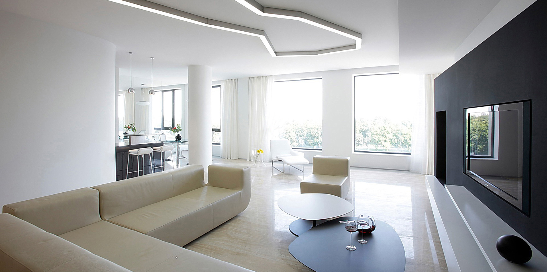 - avant-gardiste idéal pour chambres spacieuses, de préférence une disposition non standard, à la place les murs et des portes pour le zonage sont utilisés arches, étapes et podiums;