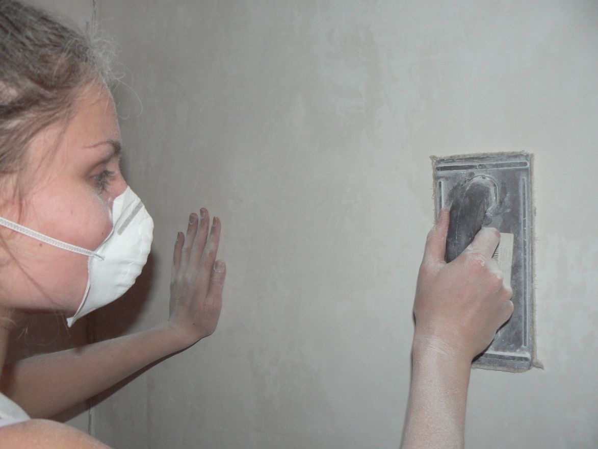 après le plâtre sèche, nous obtenons une surface plane mais rugueuse. Pour le rendre lisse, il est nécessaire d'appliquer fine couche de masticet puis poncer la surface avec du papier de verre fin.