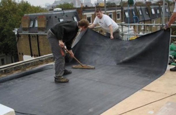Ruberoid est vendu en rouleaux de 10-15 m de long et 1-1,1 m de large.