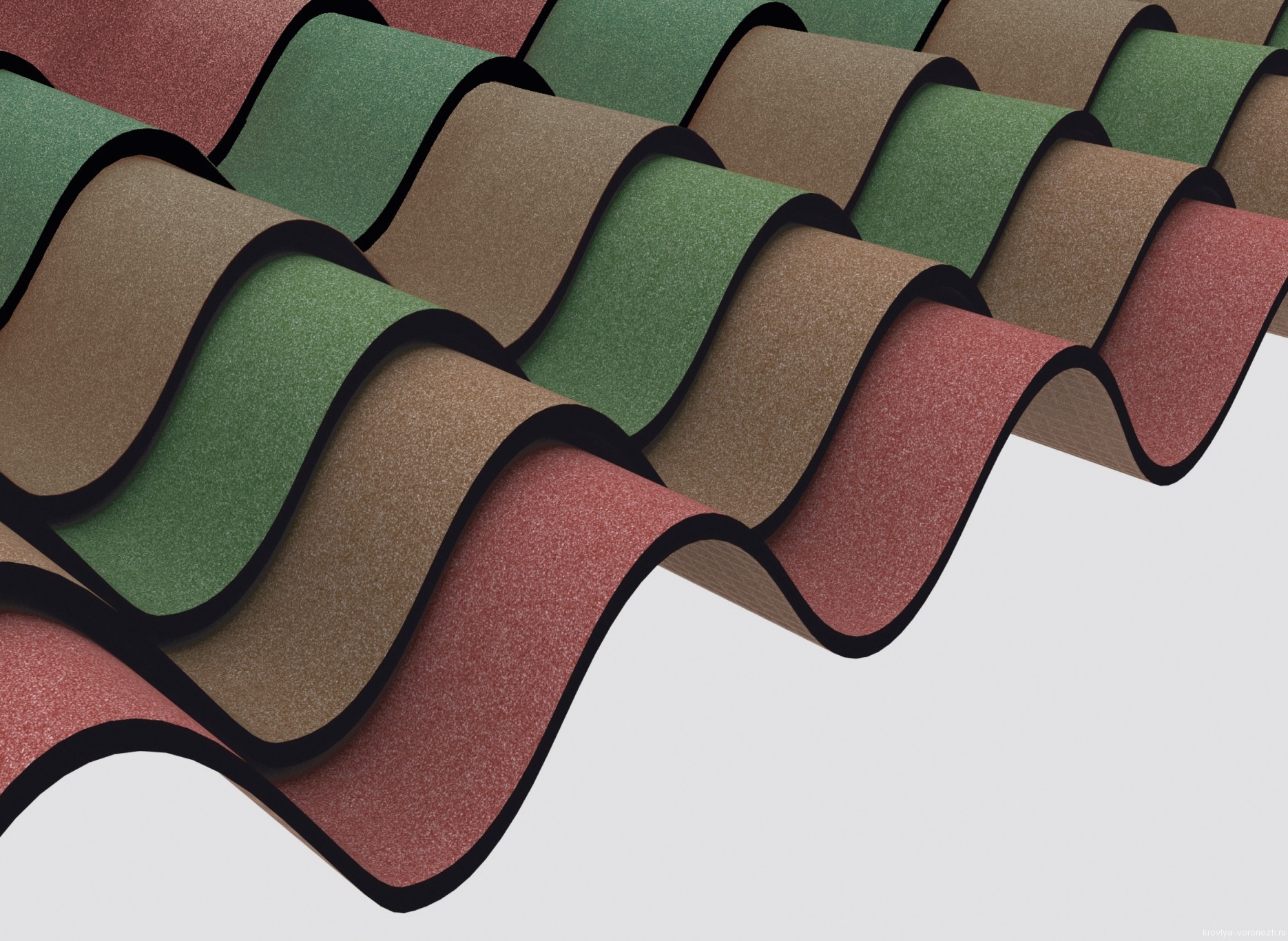 - Ondura et Ondalux - produits de la société française Onduline. Le matériau a une épaisseur de 2,6 mm, une hauteur de vague de 34 mm et un poids de 6 kg;