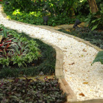 Pour l'agencement de la frontière, vous pouvez utiliser peu coûteux grès, calcaire ou coquille de rocheou plus cher marbre ou granit. Dans tous les cas, la bordure en pierre sera une belle conception du chemin de la tuile, de la pierre et même du béton. Parmi les inconvénients de ce type de frontière poids élevé et prix élevé. Pour rendre un tel design élégant d'allées de jardin accessible à un cercle plus large de personnes, certains fabricants proposent des pierres artificielles conçues spécifiquement pour aménager des allées.