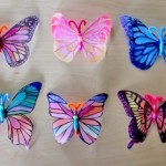 Créer des papillons à partir de bouteilles en plastique est une tâche simple et créative. Aurez besoin bouteilles pas trop serréesà partir de laquelle leur partie médiane est coupée et coupée dans le sens de la longueur pour faire des assiettes: les cous et les fonds peuvent être utiles pour d'autres métiers. À l'avance, il est nécessaire de préparer plusieurs motifs de papillons, leurs contours à l'aide d'un marqueur sont transférés sur du plastique, il ne vous reste plus qu'à découper la figure résultante avec des ciseaux. Les ailes du papillon ne sont pas pliées pour qu'elles soient aussi naturelles que possible, le papillon doit être symétrique. Maintenant, il ne reste plus qu'à peindre la pièce, pour laquelle ils sont utilisés peintures acryliques ou vernis à ongles ordinaires, perles, strass et tout autre bijou selon l'idée. Lorsque les peintures sèchent, vous pouvez coller une moustache en fil avec des perles enfilées. Vous pouvez monter de tels papillons n'importe où.