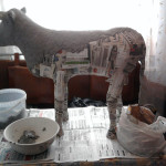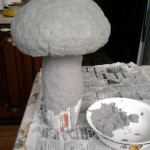 - Le taureau. Il faut deux bouteilles de 5 litres, l'une coupe le fond pour insérer une bouteille dans l'autre. À partir de la bouteille de 2 litres (utilisée pour créer le goulot), coupez le goulot en biais et fixez-le au goulot de la bouteille de 5 litres. En tant que nez, vous pouvez utiliser une tasse en plastique. Les cornes et les jambes sont faites de fil épais. Vous devez maintenant préparer une grande quantité de papier découpé et coller le blanc en 4-5 couches pour former la figure du futur taureau. Pour donner du volume et du naturel, il est nécessaire de faire une masse de plateaux à œufs trempés pendant la nuit et bien écrasés, de la colle PVA et du mastic. La billette est collée avec la masse élastique résultante et la forme d'un taureau est formée. Lorsque tout sèche bien, vous pouvez peindre et décorer le métier.De même, vous pouvez créer la forme que vous souhaitez. Il est particulièrement facile de former de gros champignons décoratifs, dont la base sera des bouteilles de 2 litres.