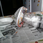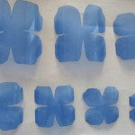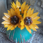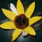 - tous les pétales sont peints en jaune avec de la peinture émail, après séchage, les trois blancs sont collectés et collés;