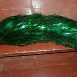 - la deuxième option consiste à couper la bouteille et le fond, et le col. Ce qui reste est coupé dans le sens de la longueur pour obtenir un morceau de plastique rectangulaire. Tous les éléments ainsi obtenus sont repassés sur du papier épais jusqu'à obtention d'une surface absolument plane. Après cela, de petits morceaux de plastique doivent être joints pour obtenir de grands. Il est préférable de le faire avec un poinçon, coudre avec du fil ou du cordon (le fil et le fil dans ce cas ne sont pas recommandés). Il est préférable de chevaucher les éléments.