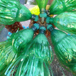 Tronc peut être fait en coupant le fond des bouteilles et en enfilant les pièces restantes les unes sur les autres, mais cela aura l'air très simple. Il vaut mieux faire comme suit. Coupez le fond des bouteilles brunes, en laissant les parties convexes intactes. Faites ensuite des coupes longitudinales pour obtenir les mêmes pétales et enfilez les pièces sur un tonneau en métal. Pour fixer les feuilles sur le tronc, recommander souder à la base du tronc de tube avec un diamètre correspondant à celui utilisé pour créer les branches de câble. L'ensemble sera particulièrement beau composition des palmiers sur le site.